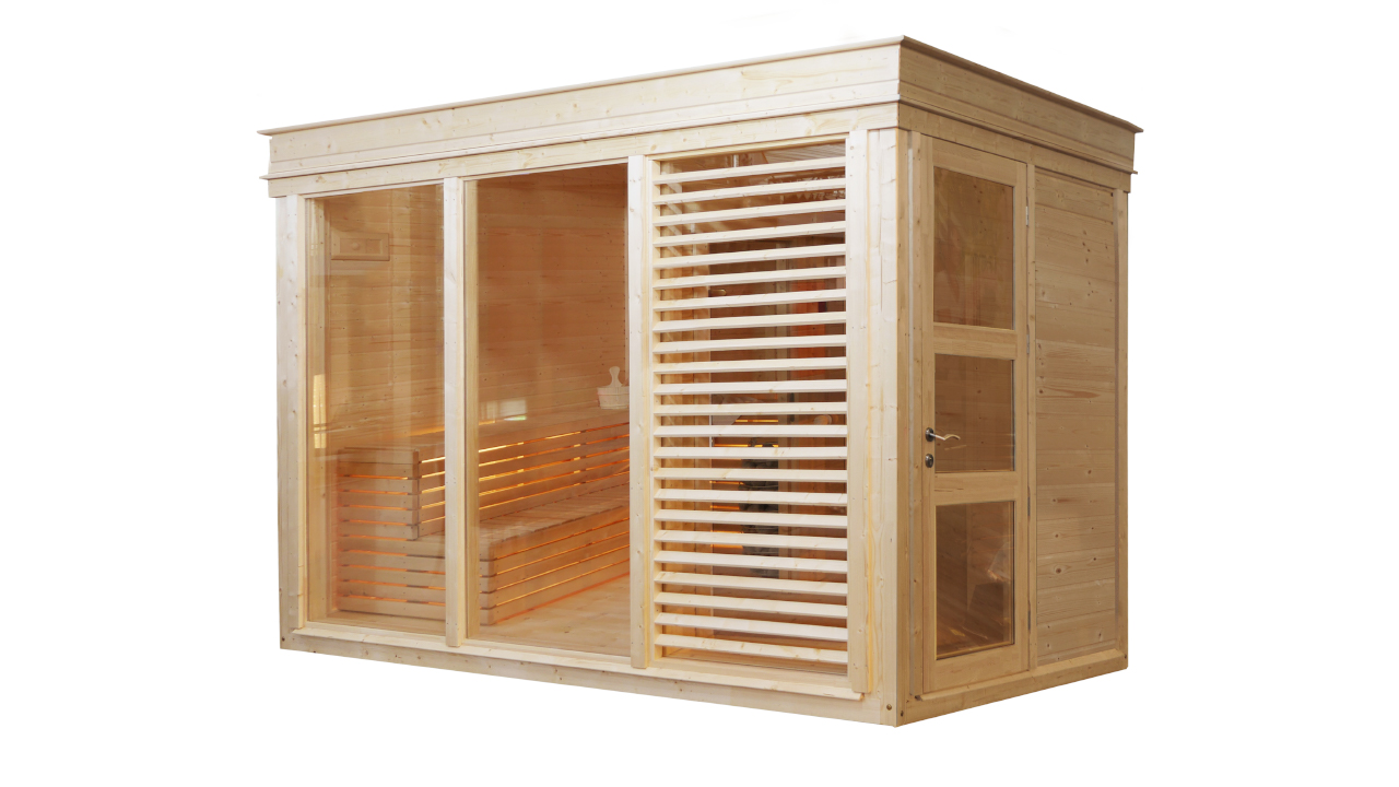 Mit dem planeo Saunahaus-Bausatz können Sie mit Freunden gemeinsam auf einer Grundfläche von ca. 5m² wohltuende Saunagänge genießen. Gemütlich können es sich 2-3 Personen liegend und bis zu 7 Personen sitzend auf den astfreien Espenholz-Bänken machen. Sie erhalten einen hellen Raum durch eine verglaste Leimholztür und Glaselement-Wänden. Ein Vorraum von 2,2m² Fläche dient als Entspannungszone, Duschbereich* oder Umkleide.