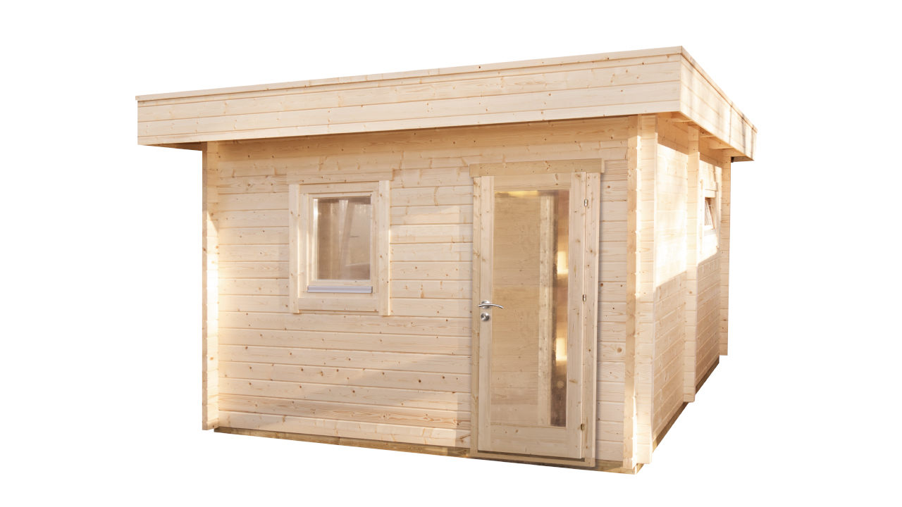 Mit dem planeo Saunahaus-Bausatz können Sie mit Freunden gemeinsam auf einer Grundfläche von 3,8m² wohltuende Saunagänge genießen.