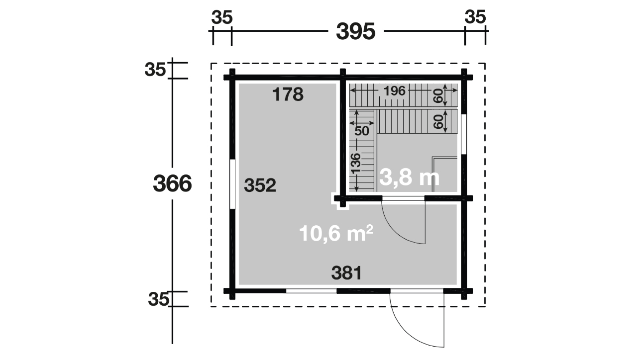 Gemütlich können es sich 2-3 Personen liegend machen und 7 Personen finden sitzend Platz auf den astfreien Espenholz-Bänken. Sie erhalten einen hellen Raum durch eine verglaste Leimholztür und 3 Einzelfenstern.