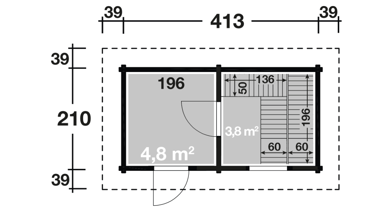 Gemütlich machen Sie es sich auf den astfreien Espenholz-Bänken und erhalten einen hellen Raum durch eine verglaste Leimholztür und einem Einzelfenster.
