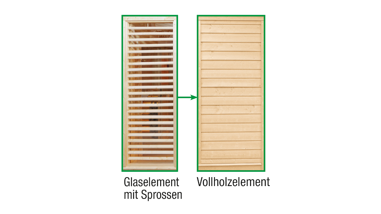 einzelnes tauschbares Vollholz-Element für Paradiso-Saunahäuser