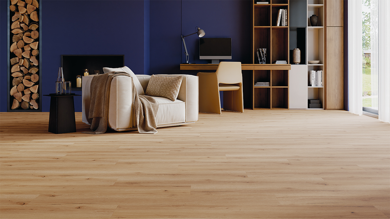 Die UV-PU Lackierung schützt die Oberfläche zuverlässig vor Abrieb, Kratzern und Flecken und macht den Boden besonders langlebig und pflegeleicht. Dank ultramattem Finish wirkt die Oberfläche extra modern und naturnah, ohne störende Spiegelungen.