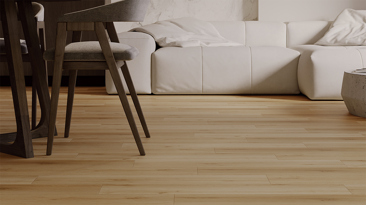 Der Rigid Vinylboden HOMEtec Pro 50 IXPE vereint eine edelmatte, ultramatte Oberfläche mit einer naturgetreuen Holzoptik und sorgt für ein besonders authentisches Wohngefühl. Die hochwertige Synchronprägung bildet die Maserung nicht nur optisch, sondern auch fühlbar nach - für eine realistische Holzstruktur mit spürbarer Tiefe.