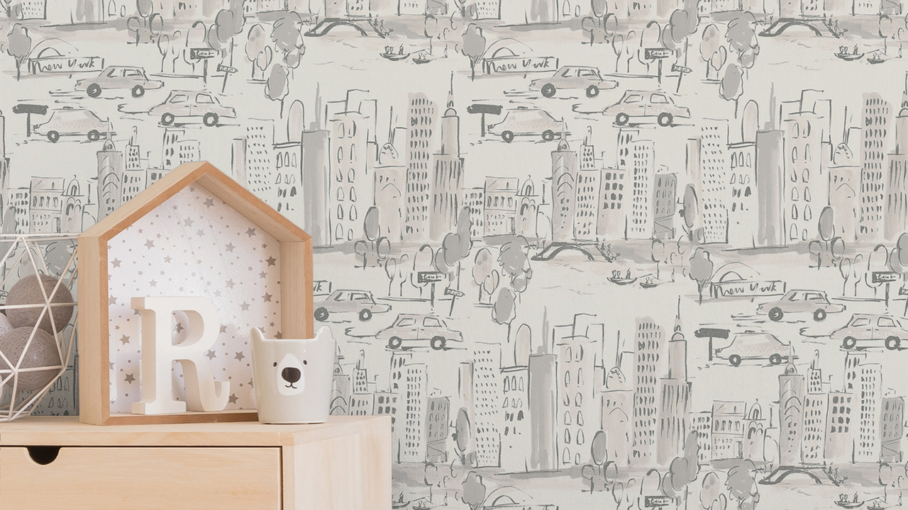 Papiertapete Boys & Girls 6 A.S. Création Modern Kindertapete Stadt Grau Metallic Weiß 533