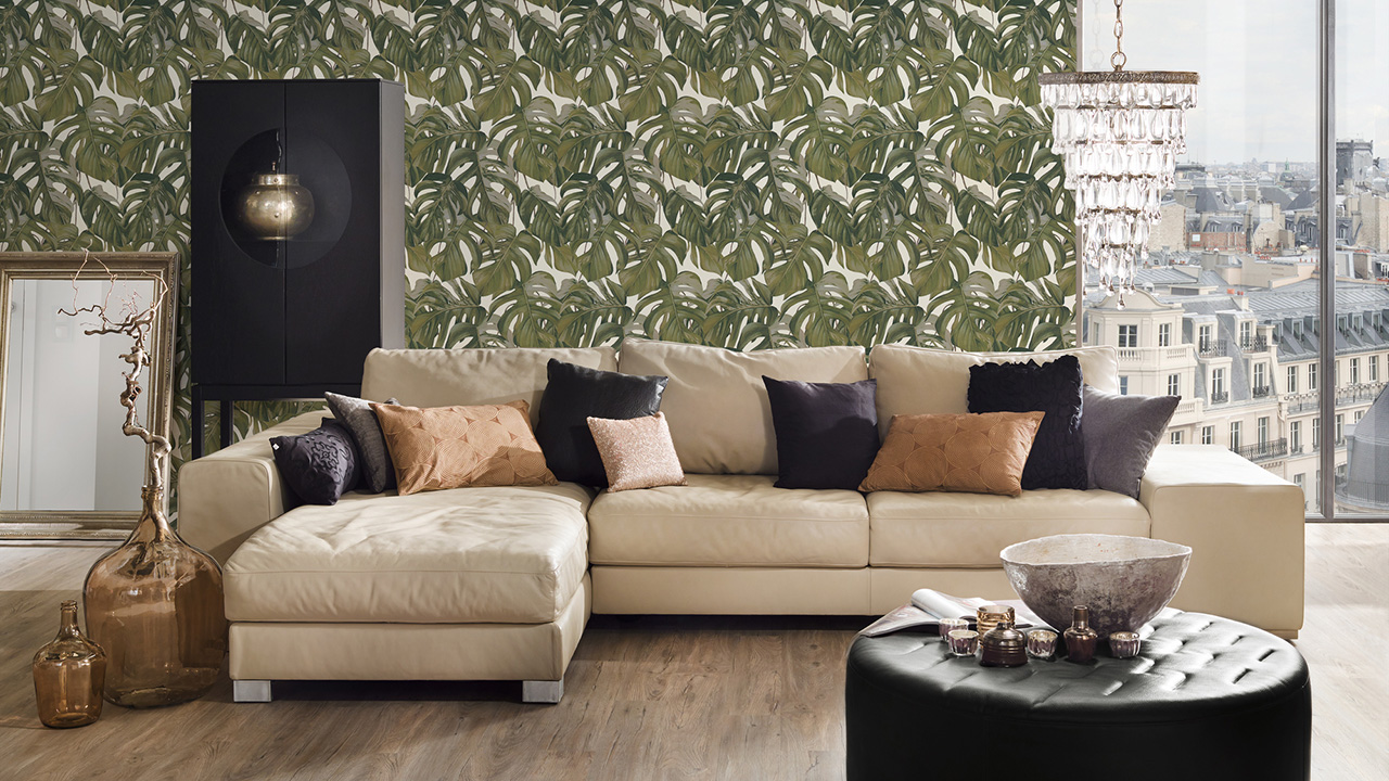 Tapete Dream Again Michalsky Living Palmenblätter Grau Grün Weiß 192