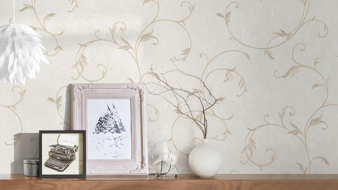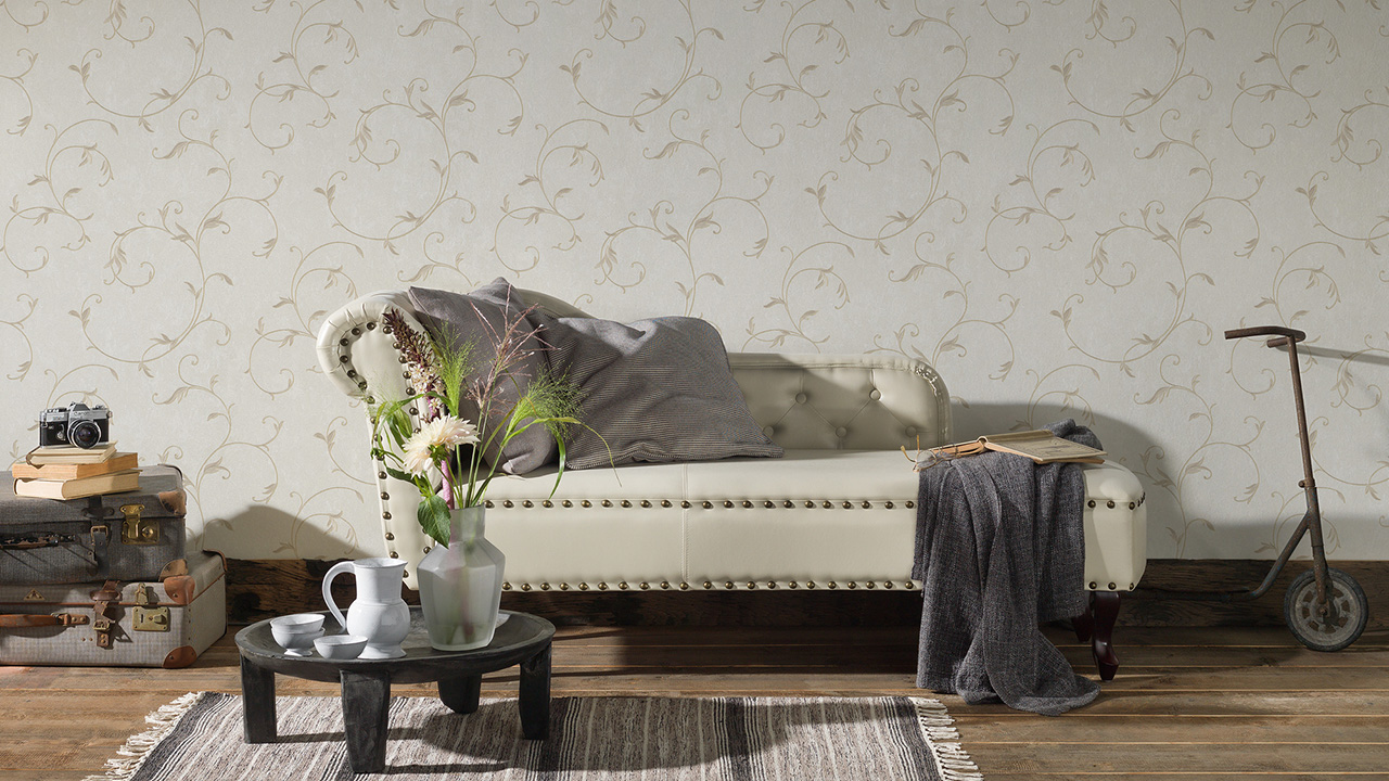 Vinyltapete beige Barock Blumen & Natur Streifen Romantico 182