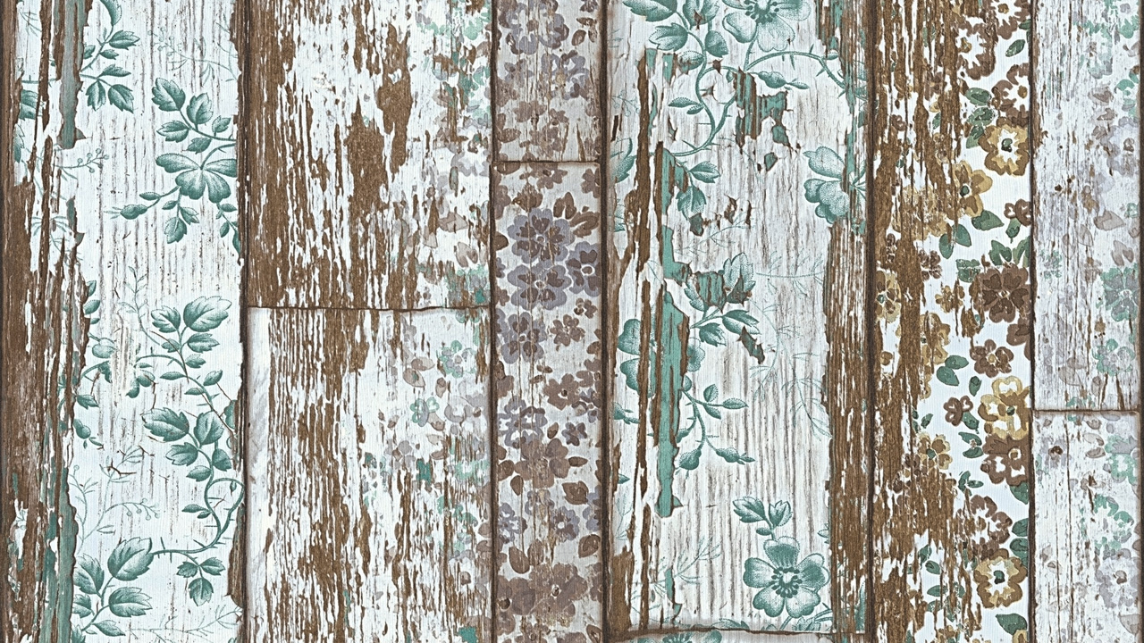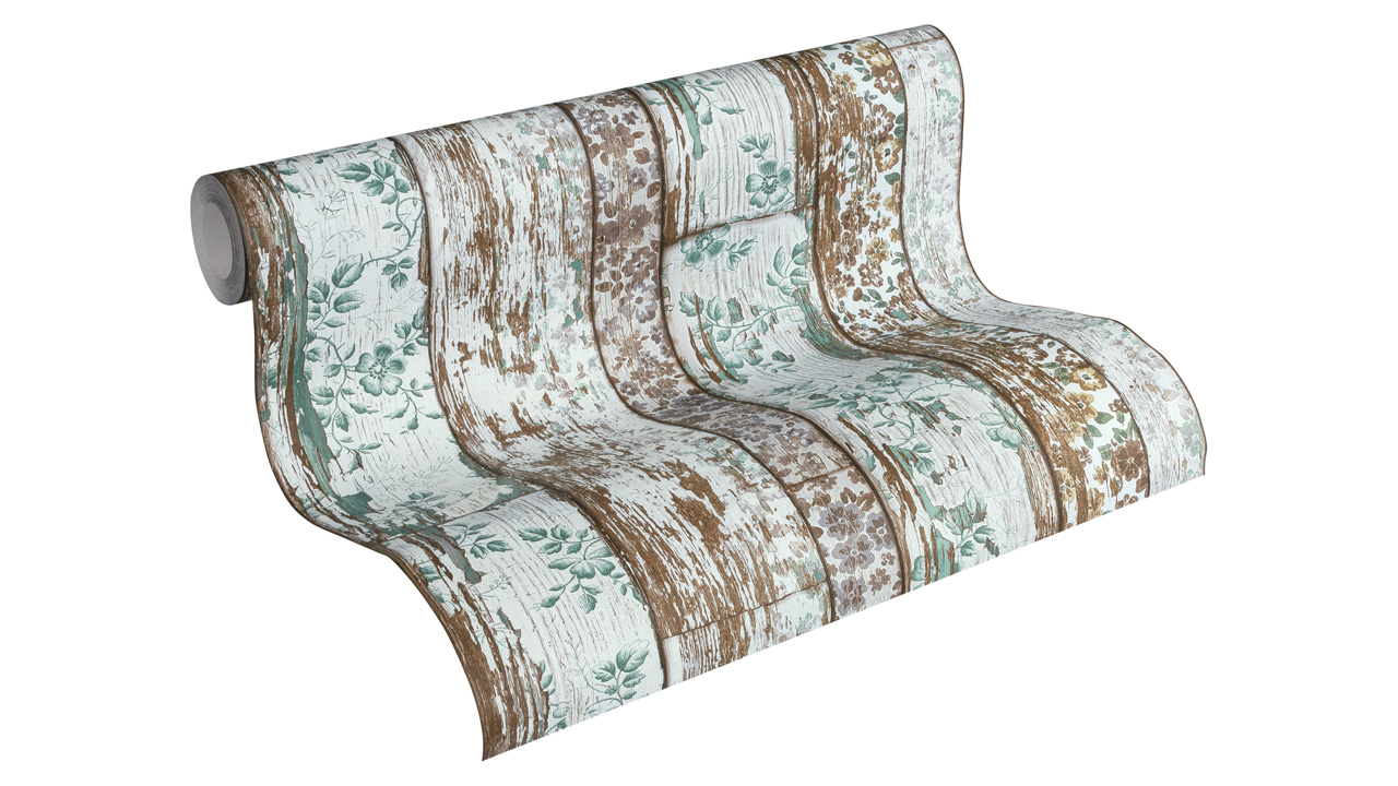 Vinyltapete grün Vintage Blumen & Natur Holz Neue Bude 2.0 193