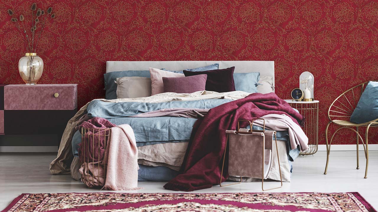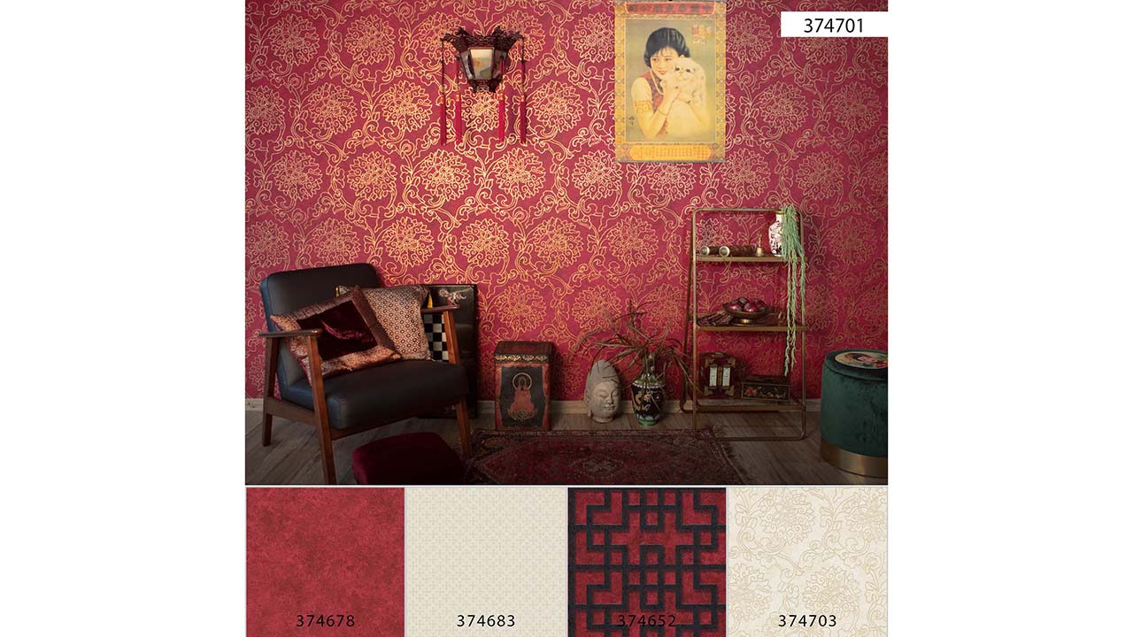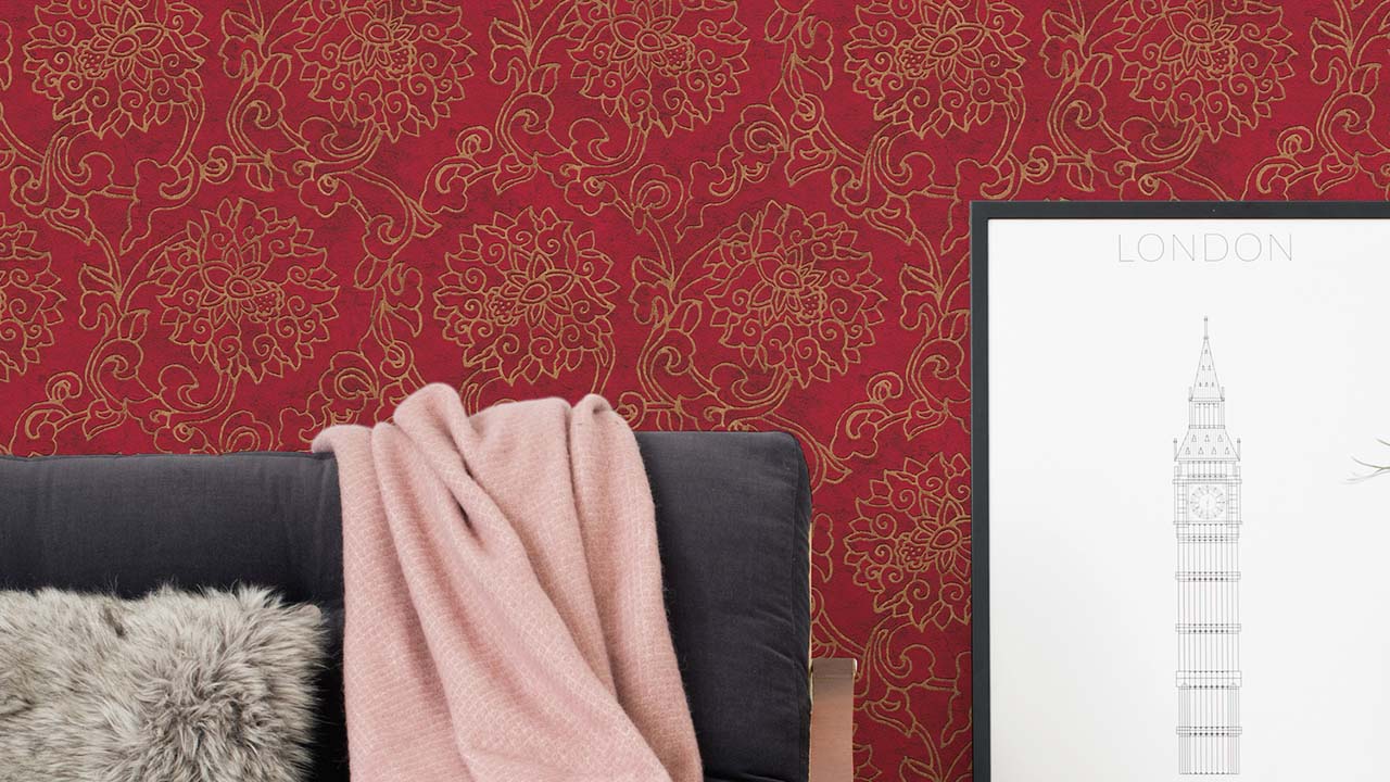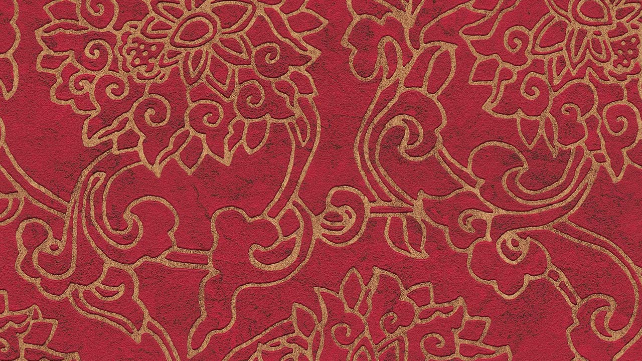Vinyltapete rot Modern Retro Blumen & Natur Asian Fusion 701
