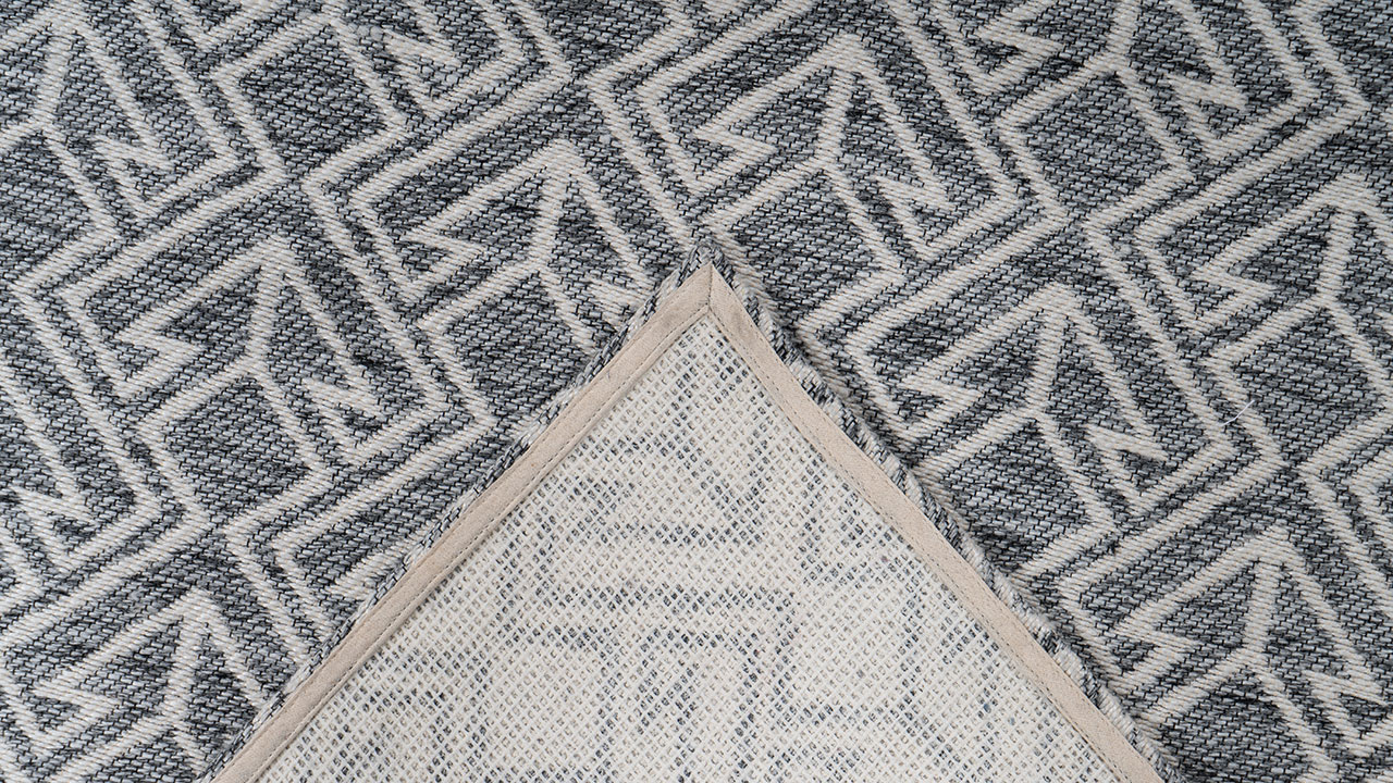 Das Material ist robust und widerstandsfähig und wetterfest. Dank eines wasserdurchlässigen Rückens aus Latex kann sich keine Nässe auf der Oberfläche stauen, sodass der Teppich bei Wind und Wetter im Außenbereich liegen bleiben kann.