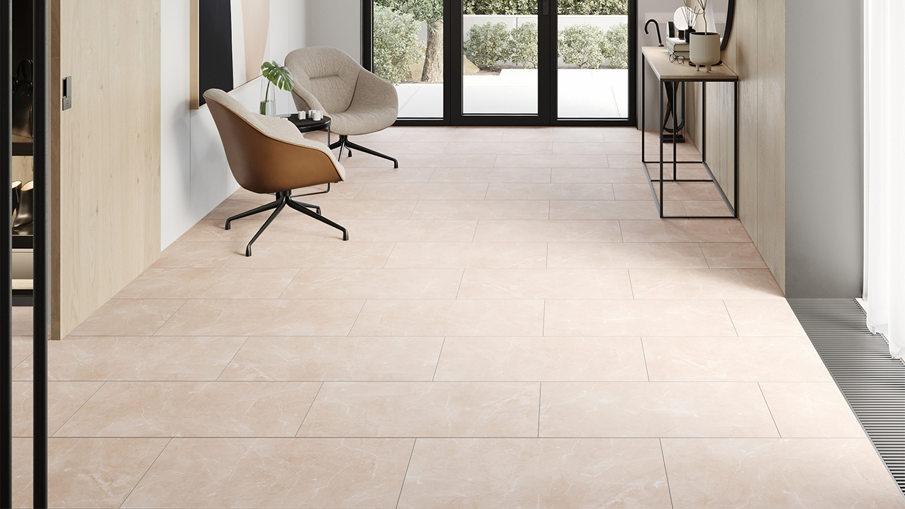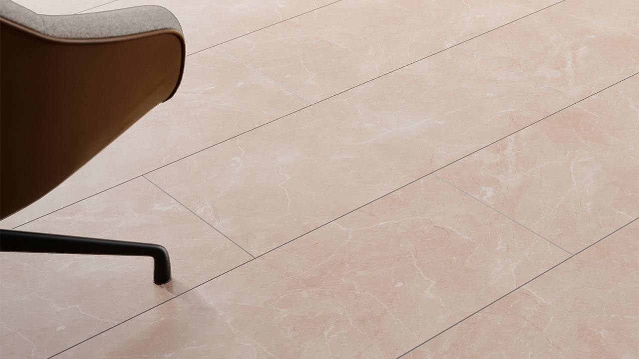 le sol vinyle planeo Rigid apparaît avec un décor moderne de pierre super mate et est déjà équipé d'une sous-couche insonorisante.