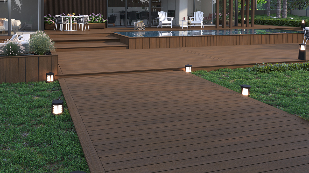 Les planches de terrasse planeo CoEx WPC sont composées d'un mélange de matériaux particulièrement robustes (Wood-Plastic-Composite) et ne permettent pas la pénétration de l'eau. Elles sont extrêmement stables et très résistantes aux intempéries.