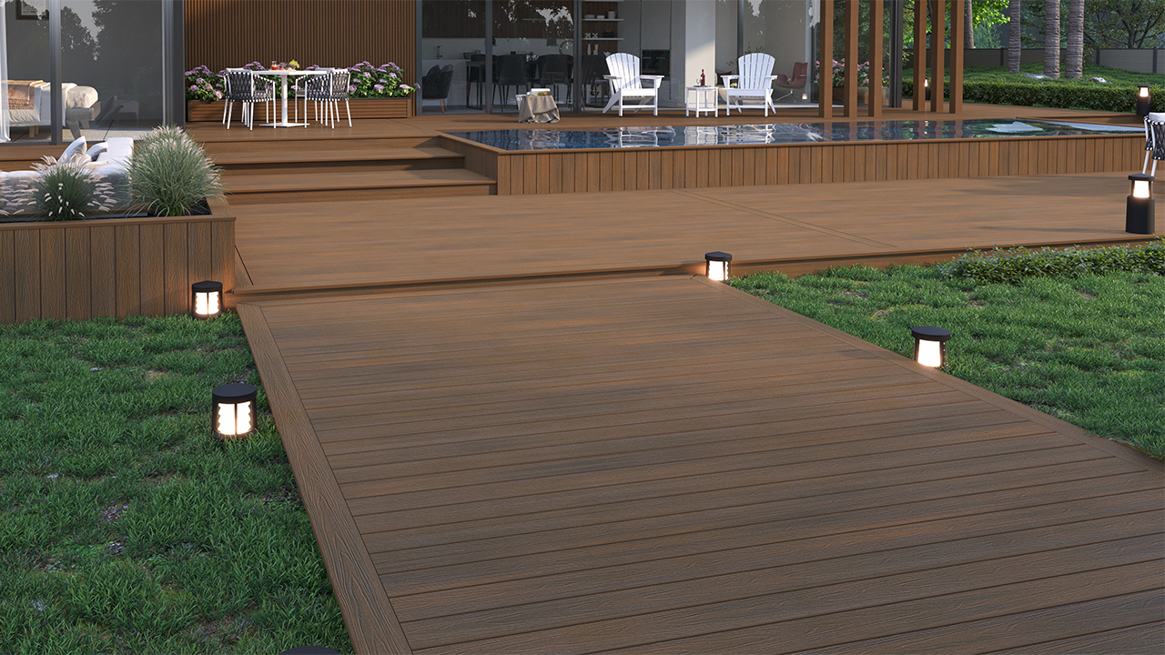 Les planches de terrasse planeo CoEx WPC sont composées d'un mélange de matériaux particulièrement robustes (Wood-Plastic-Composite) et ne permettent pas la pénétration de l'eau. Elles sont extrêmement stables et très résistantes aux intempéries.