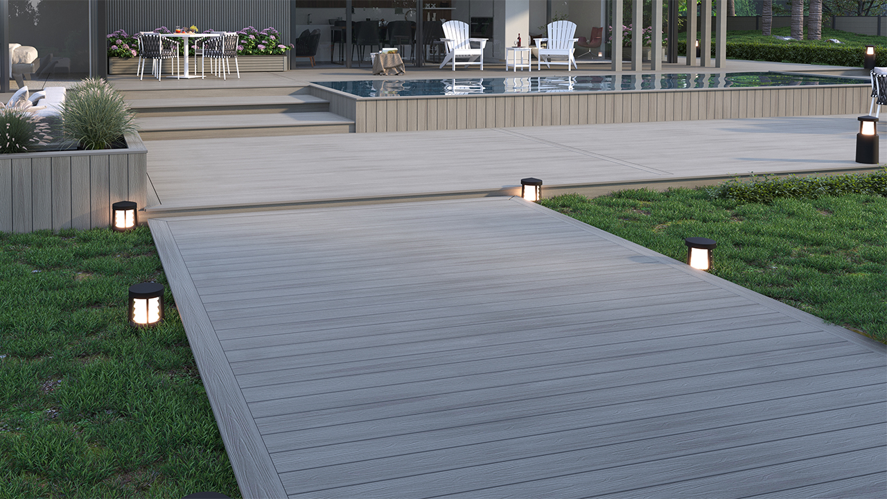 Les planches de terrasse planeo CoEx WPC sont composées d'un mélange de matériaux particulièrement robustes (Wood-Plastic-Composite) et ne permettent pas la pénétration de l'eau. Elles sont extrêmement stables et très résistantes aux intempéries.