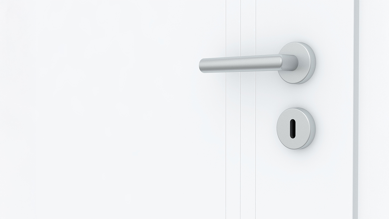 L'image d'ensemble harmonieuse est complétée par des huisseries assorties en blanc 9003. Pour un accent moderne, il est recommandé de combiner la porte avec des ferrures noires qui soulignent avec style le design minimaliste.