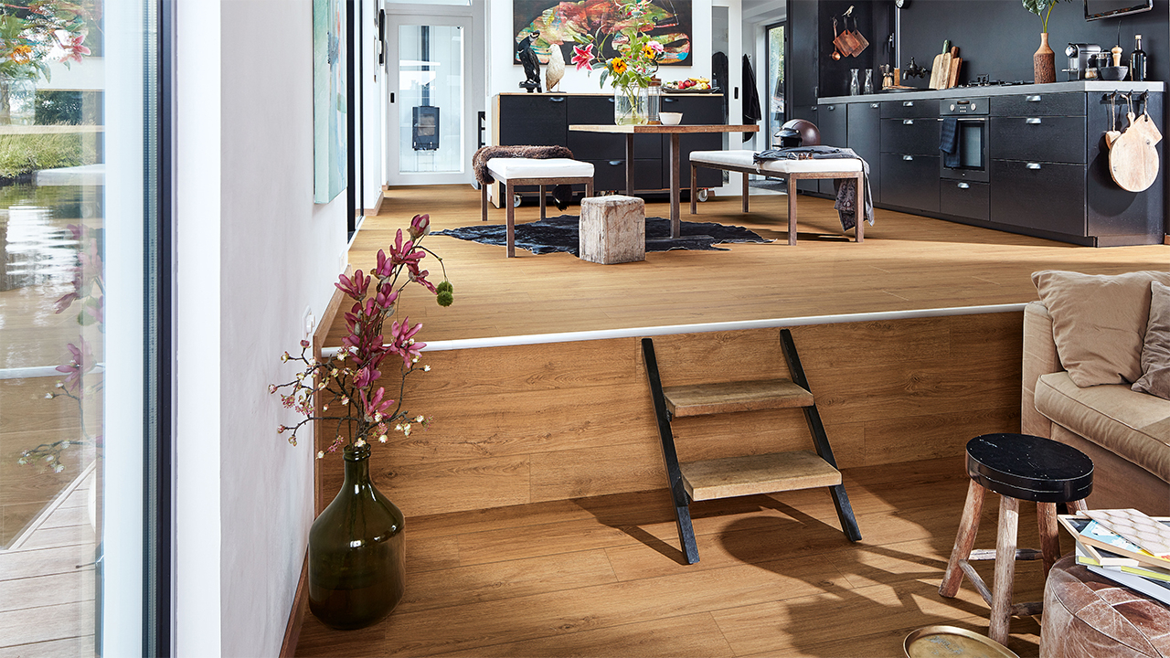 MeisterDesign. next DD 500 S ist der innovative Designboden mit natürlicher Trittschalldämmung. Der hochwertige modulare Produktaufbau mit integrierter Trittschallkaschierung aus natürlichem Kork bietet die Basis für einen langlebigen und nachhaltigen Bodenbelag, der sich für besonderen Komfort in Wohn- und Schlafräumen genauso eignet wie in Küche oder Bad - natürlich auch auf Fußbodenheizungen.