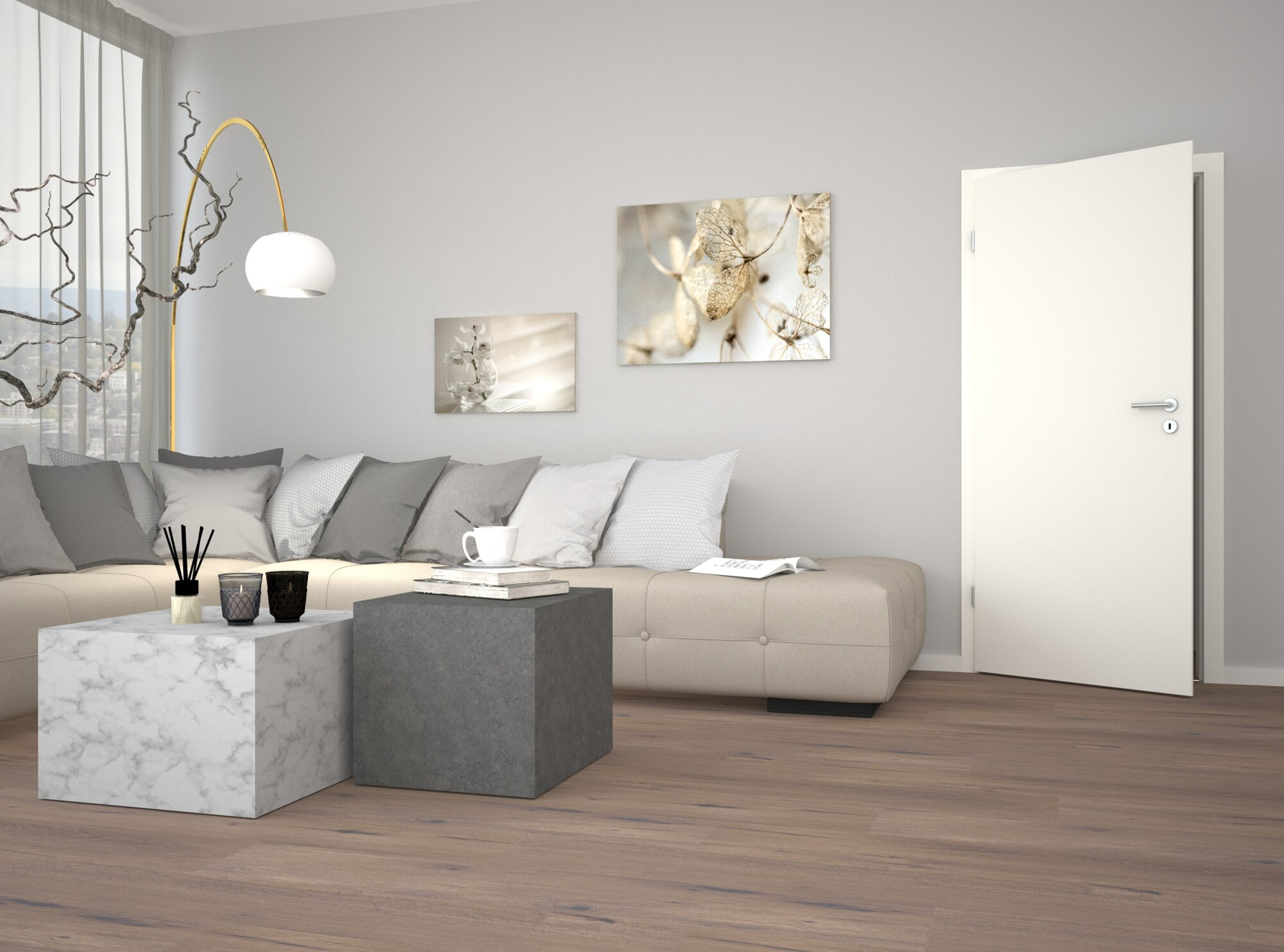 La porta interna bianca VELA Calma è sinonimo di semplicità senza tempo e di accogliente sobrietà. Il suo colore bianco tenue, basato su RAL 9010, porta un leggero calore nell'ambiente e ha un effetto piacevolmente discreto. In questo modo la porta può essere integrata senza problemi in un'ampia varietà di concetti abitativi, dal classico al moderno.