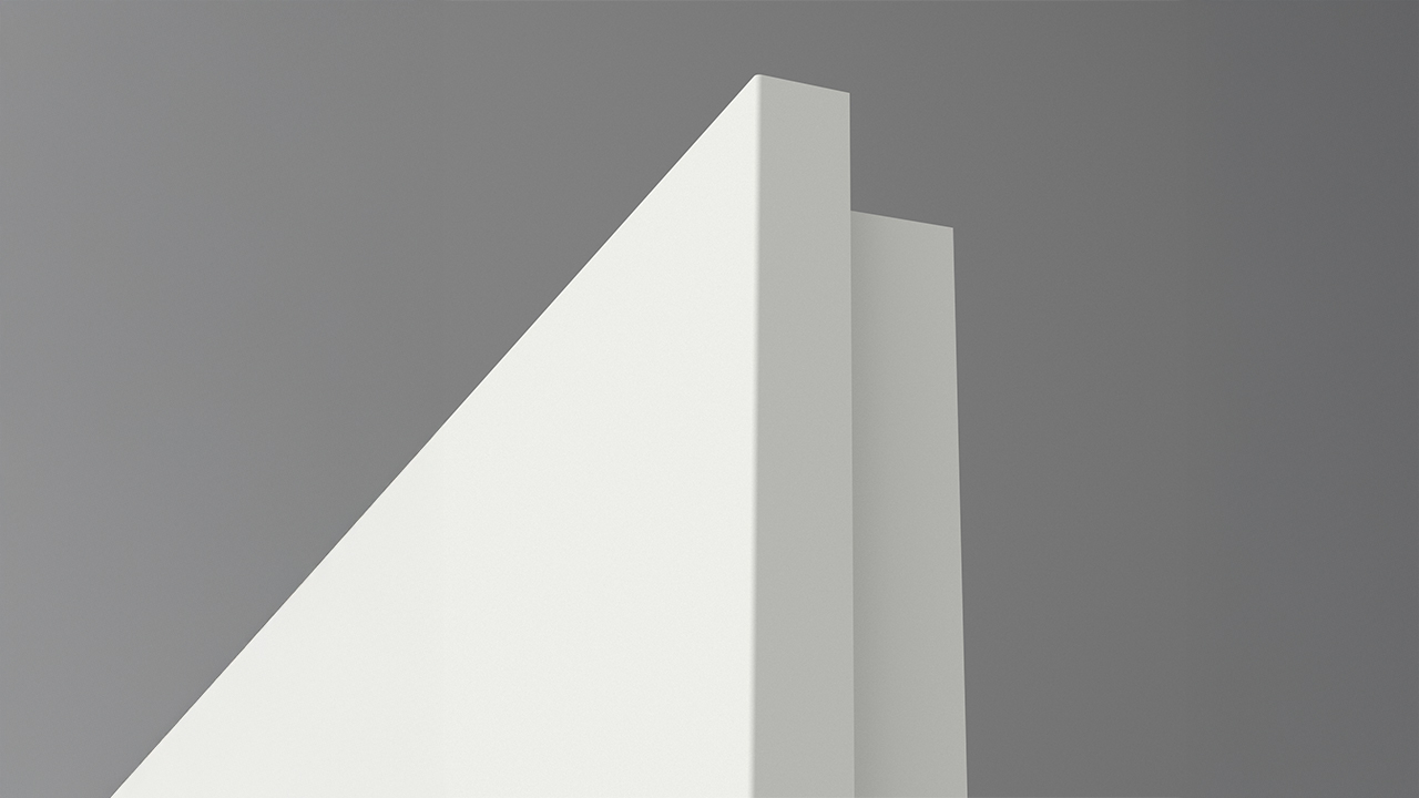 Per un look complessivo armonioso, sono disponibili cornici abbinate in bianco 9010, che completano perfettamente il carattere calmo ed equilibrato della porta.