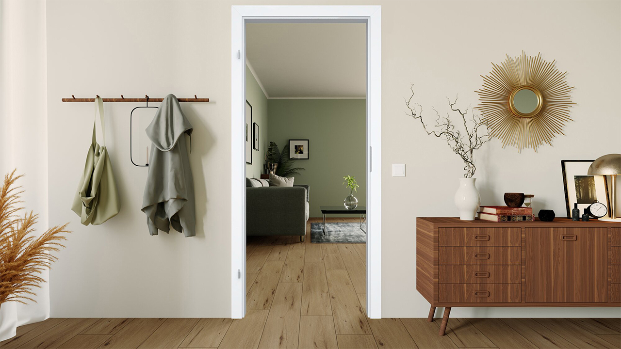 Der hellkühle Weißton, angelehnt an RAL 9003, verleiht der Zarge eine dezente, minimalistische Ausstrahlung und harmoniert perfekt mit unseren Innentüren im gleichen Farbkonzept.